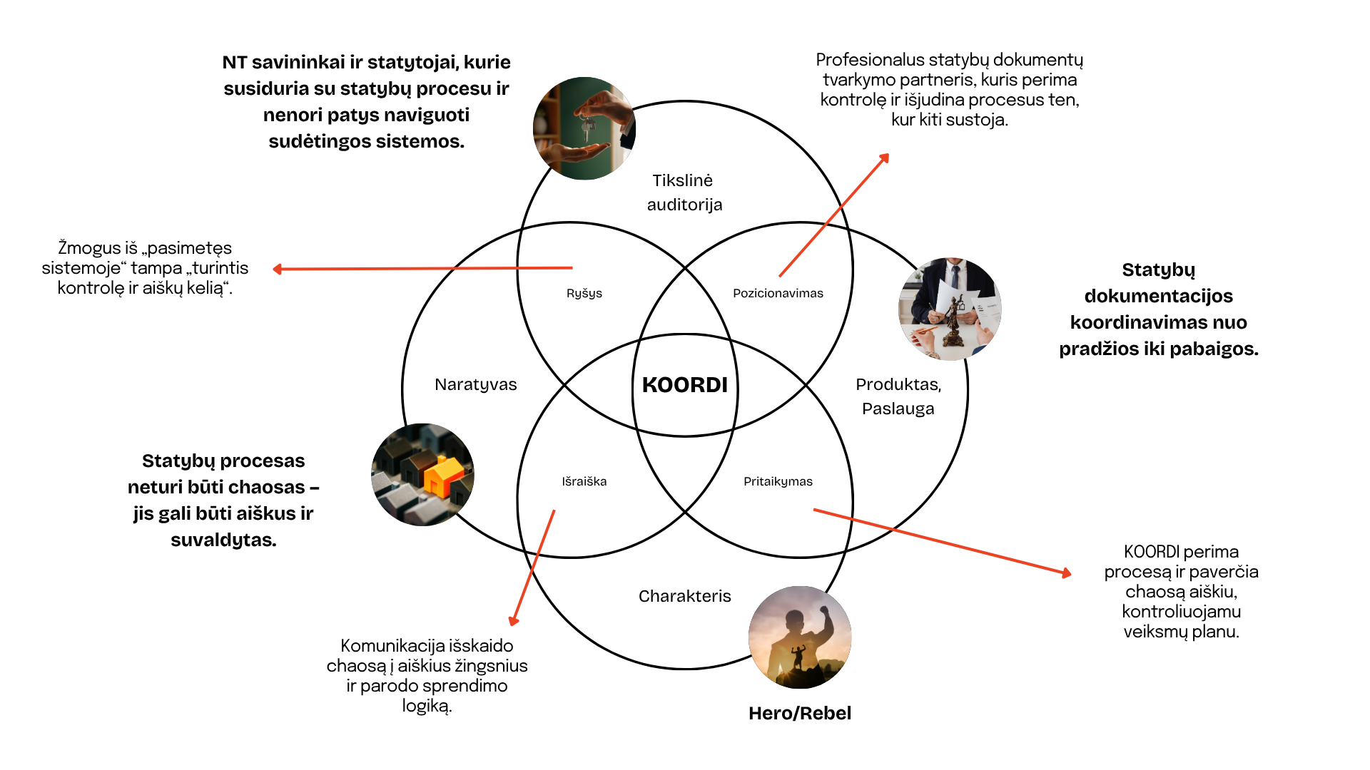 Todėl vienu svarbiausių projekto tikslų tapo sukurti naują pavadinimą, pozicionavimo ir komunikacijos kryptį, kuri aiškiai atspindėtų įmonės vaidmenį – perimti sudėtingų procesų koordinavimą ir padėti klientams judėti ten, kur projektai dažnai sustoja.